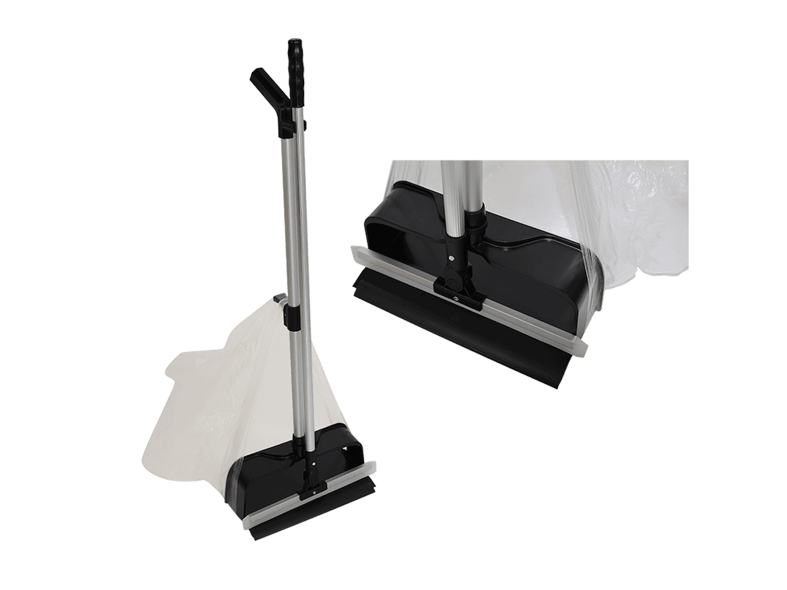 Det tørre såvel som det våde snavs skrabes direkte ind i en aftagelig pose med sweeper'en. Specielt velegnet til flydende væsker, glasskår og andre ting man ikke ønsker at komme i berøring med. Passer til de fleste posestørrelser.