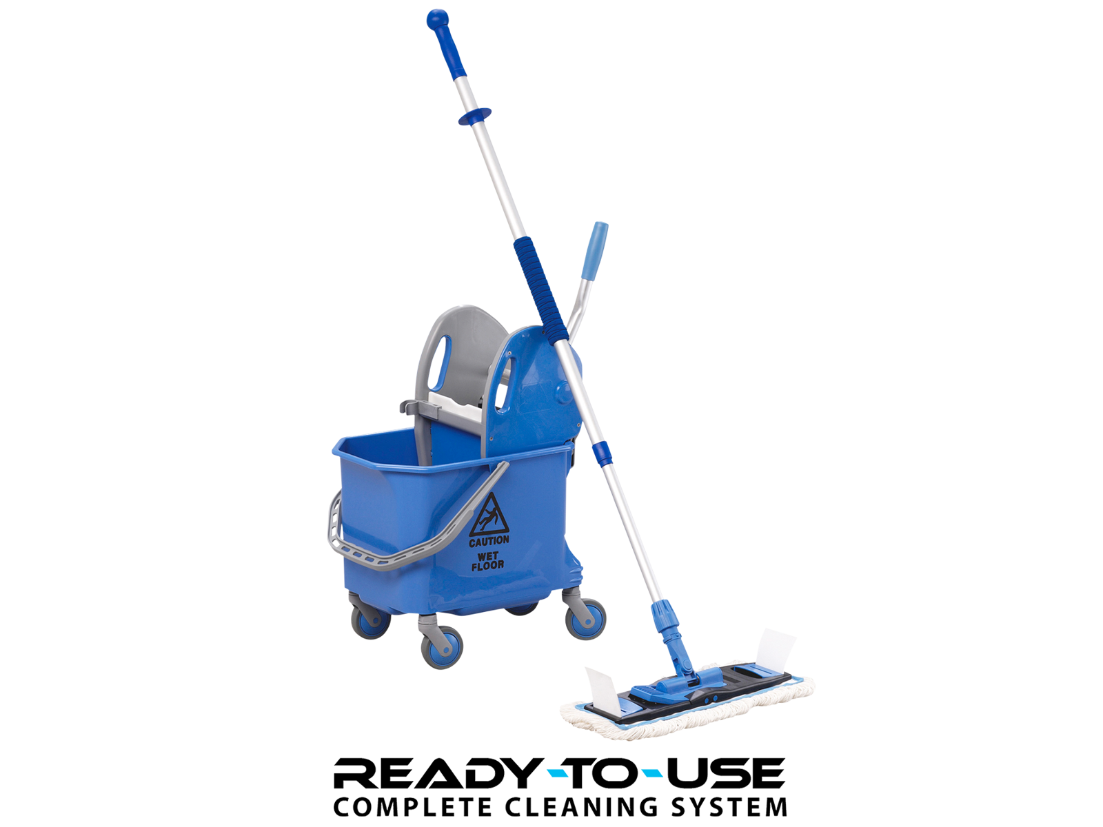 Komplet mopvogn der kan rumme op til 18 liter væske. Nem at dræne moppen ved hjælp af den indbyggede presse.