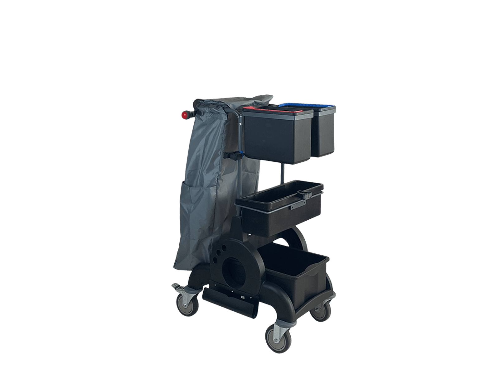 Stilren og brugervenlig rengøringsvogn i NMF’s eksklusive designlinje – oplagt til synlig rengøring. Smart og kompakt rengøringsvogn til microfiber rengøring samt indsamling af affald. Den ultra smalle vogn på bare 42 cm i bredden gør den særlig velegnet til steder med smalle døre. Materiale: 87% certificeret genanvendt plast af forbrugeraffald indsamlet i Europa.