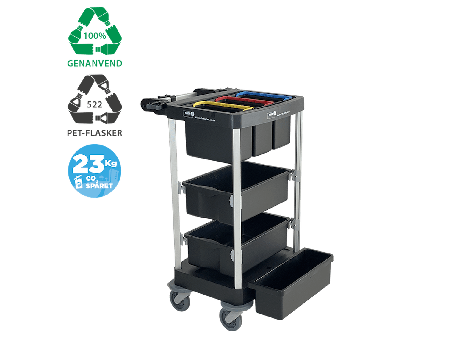 Rengøringsvogn Gengrugsplast Sort Small Åben model N-1000-NRT2-S3
