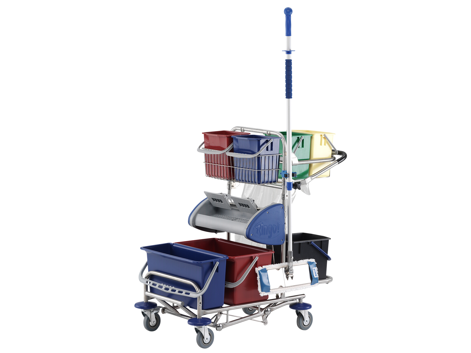 Rengøringsvogne leveres komplet som inclusiv skaft, fremfører og 1 garn. Kurven sælges seperat. H: 99 cm. B: 57 cm. L: 92 cm