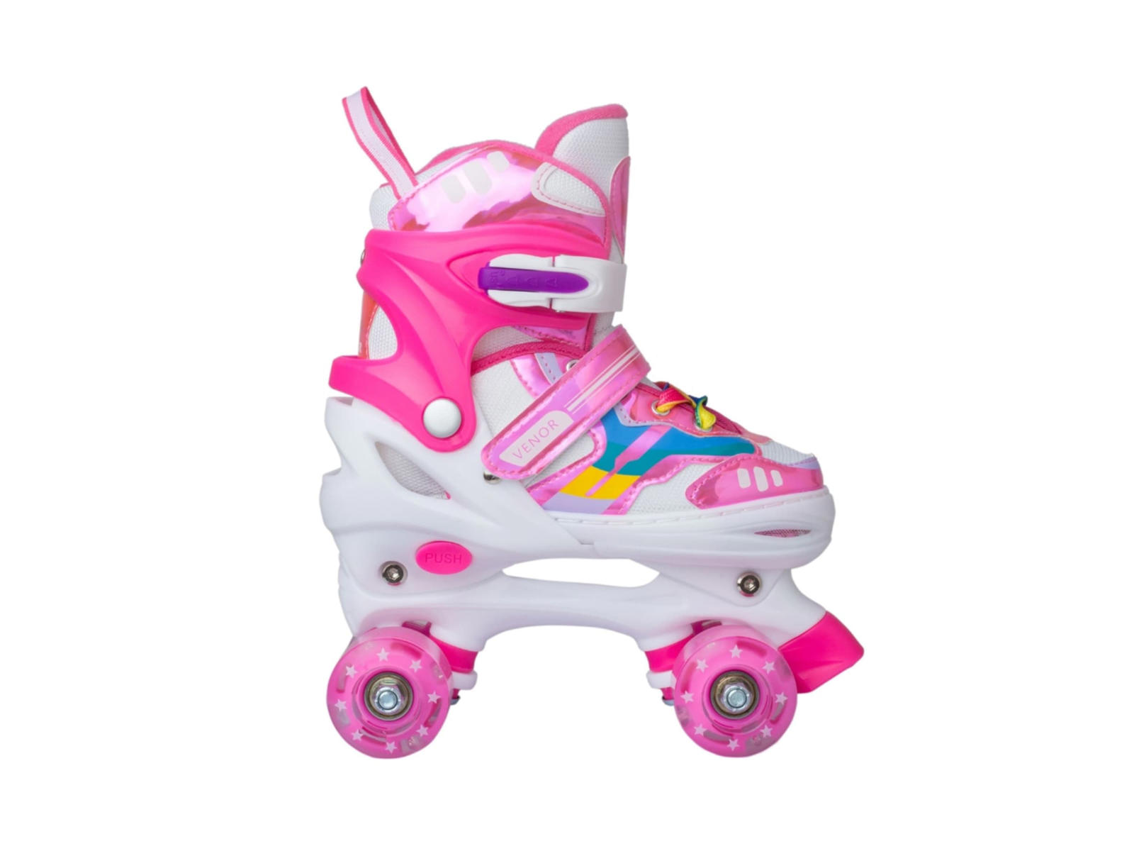 Oplev den farverige verden af rulleskøjteløb med VENOR Ignite LED Side-by-Side Rulleskøjter. Disse skøjter er designet til at vokse med dit barn, med en justerbar støvle, der nemt ændrer størrelse med et tryk på en knap. Perfekte til både børn og legesyge voksne, forvandler disse skøjter hver skøjtetur til en lysende oplevelse med deres regnbuefarvede hjul.