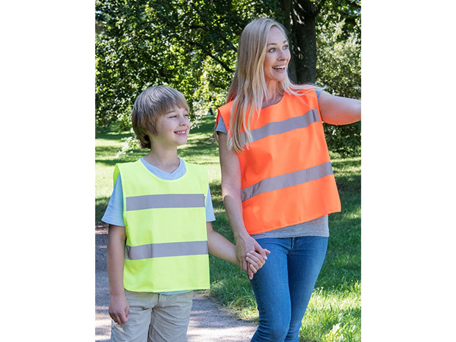 Refleksvest med jeres eget logo. Elastik i siderne. Nem at få på. Vælg mellem gul og orange.