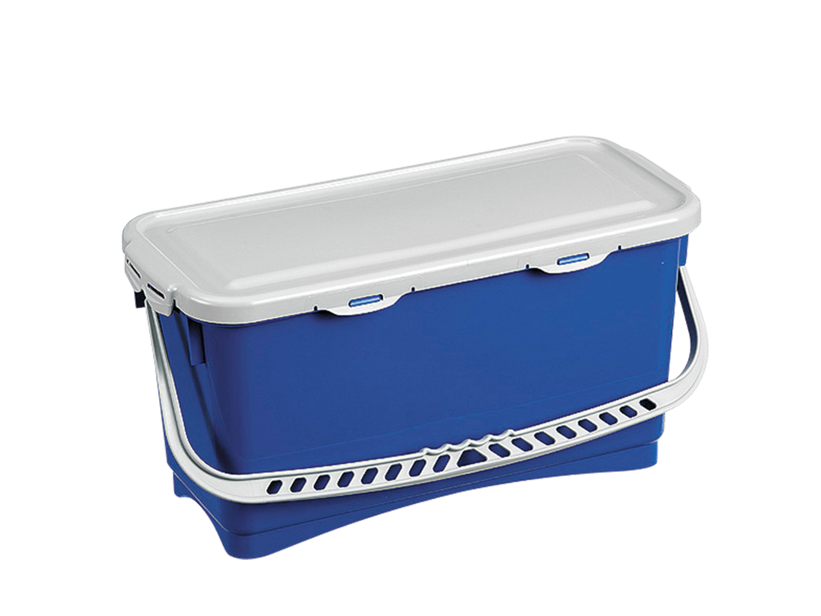 Blå moppeboks med låg til 40 cm mopper, 20 l. Mopperne lægges ned i spanden eller stilles på højkant. Herefter doseres den rette vandmængde til den pågældende moppe. Moppeboksen kan indeholde 25-30 microfibermopper.Boksen holder mopperne fugtige/våde i op til 12 timer før anvendelse. Boksen kan med fordel også bruges efter forimprægnering i vaskemaskine.