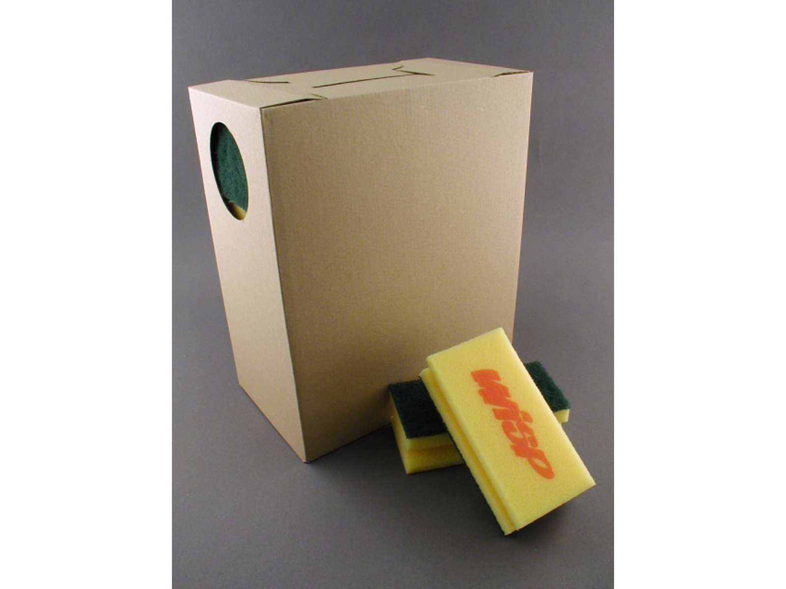 Gul svamp med grøn slibekornsoverflade.