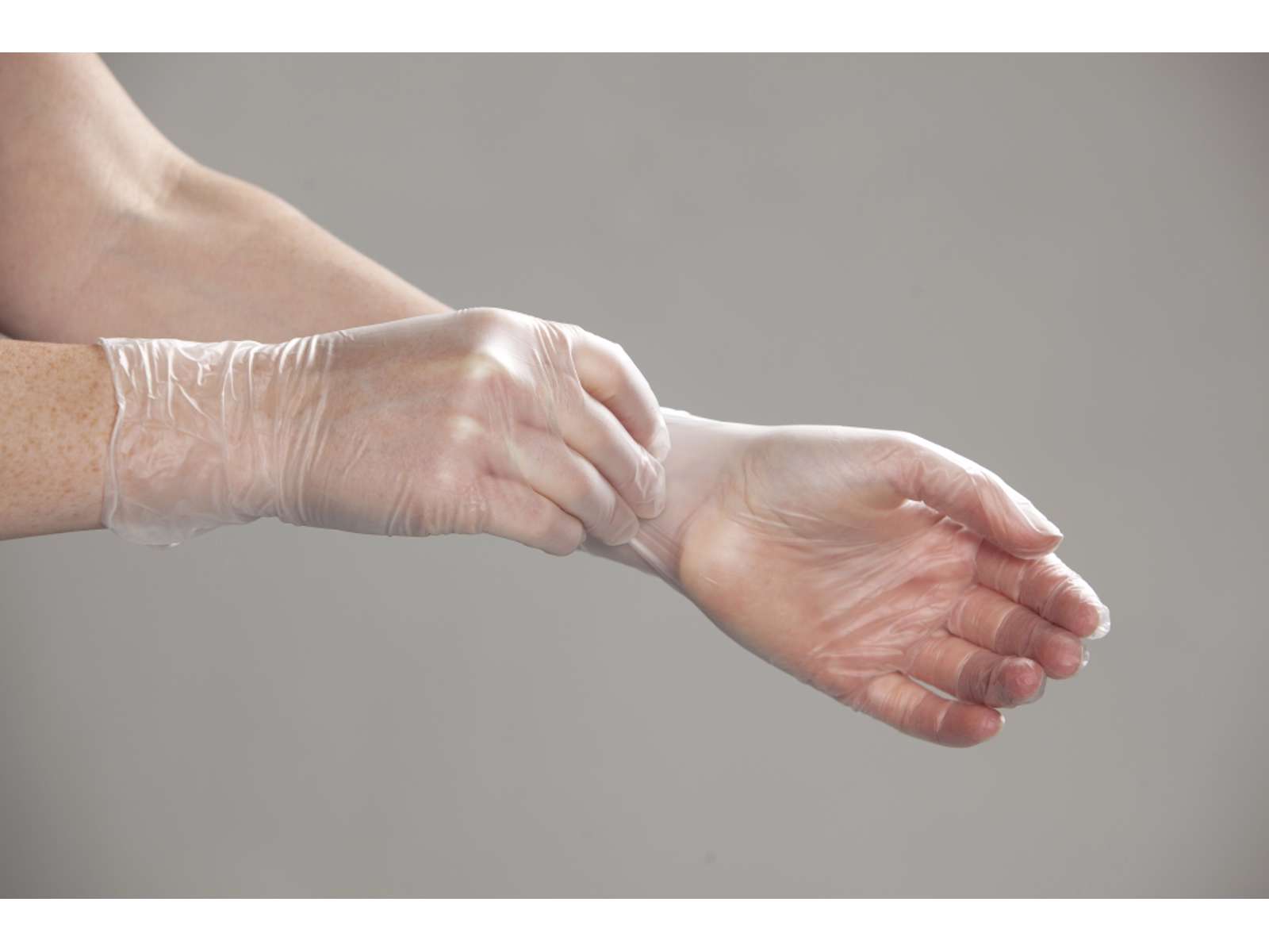 Vinyl undersøgelseshandske i god kvalitet. Glat overflade. Fremstillet af blødt vinyl. Uden latexproteiner.