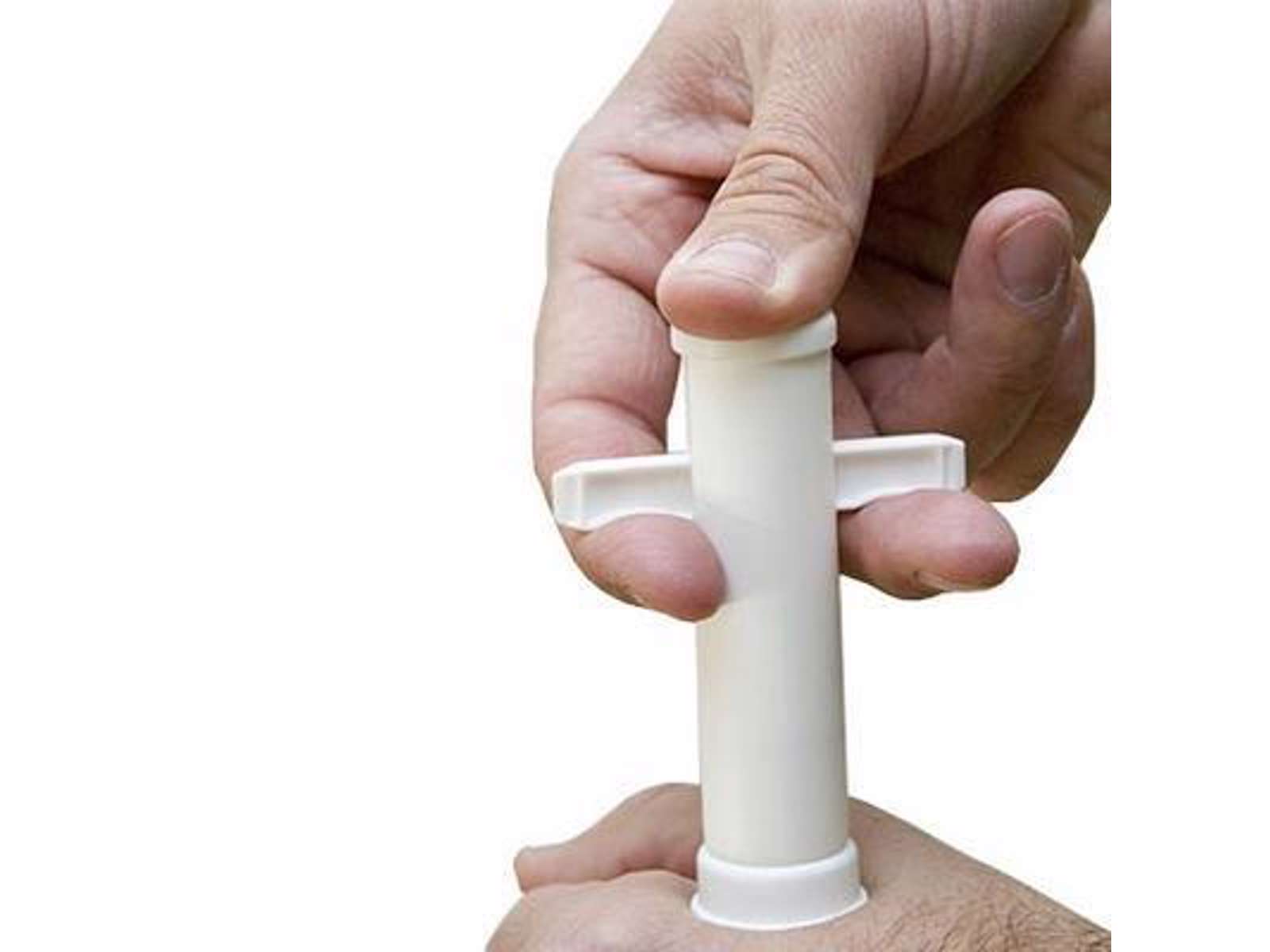 Sæt giftsugeren på stikket og træk i tværstangen med kun en hånd. Vend mundstykket ved brug for mindre steder (eks. fingre). Hvis du er stukket af en bi, skal du først fjerne/skrabe brodden væk med de dertil designede ender af tværstangen. Derefter kan du anvende denne giftfjerner.