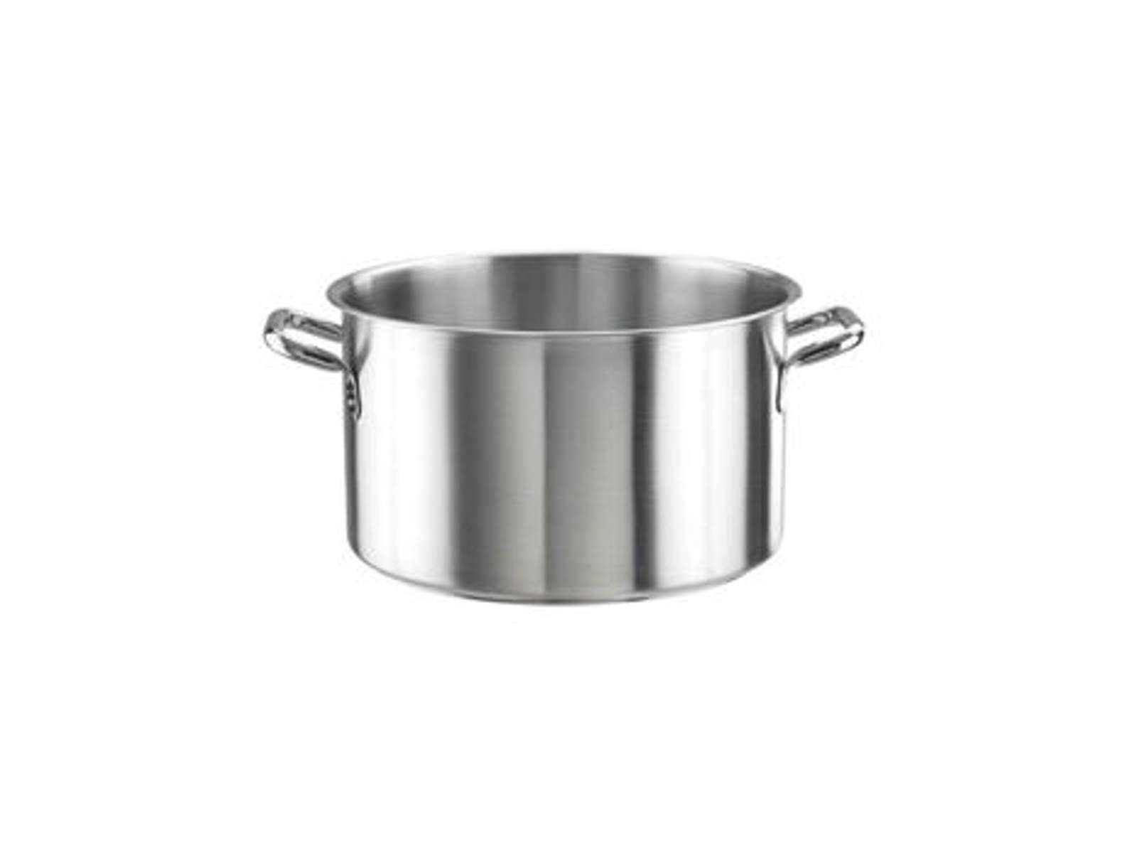 Profi Therm kogegrej, fremstillet i kraftigt rustfrit stål. Velegnet til brug i gastronomi. Matpoleret. 4,3 mm indkapslet sandwicchbund. Induktionsvenlig. Kraftige koldgrebsører. H: 14 cm