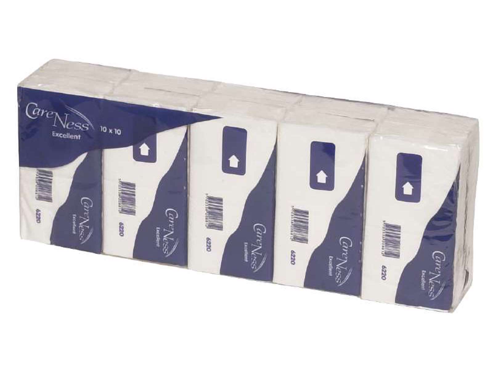 Papirlommetørklæder 3-lags 21 x 20,7 cm hvid CareNess Excellent
