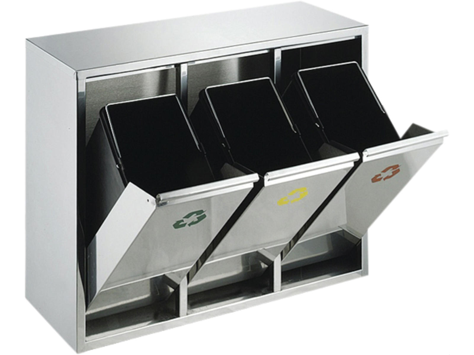 Affaldsstativ til kildesortering frontåbning mat stål 3x15 liter