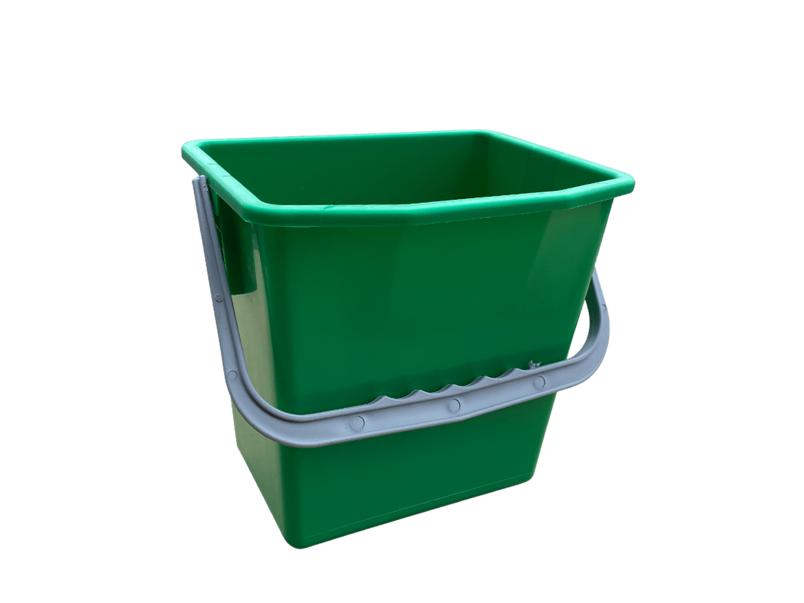 Grøn rengøringsspand, 6 liter. Fås også i rød, blå og gul.Muligt at få låg til.