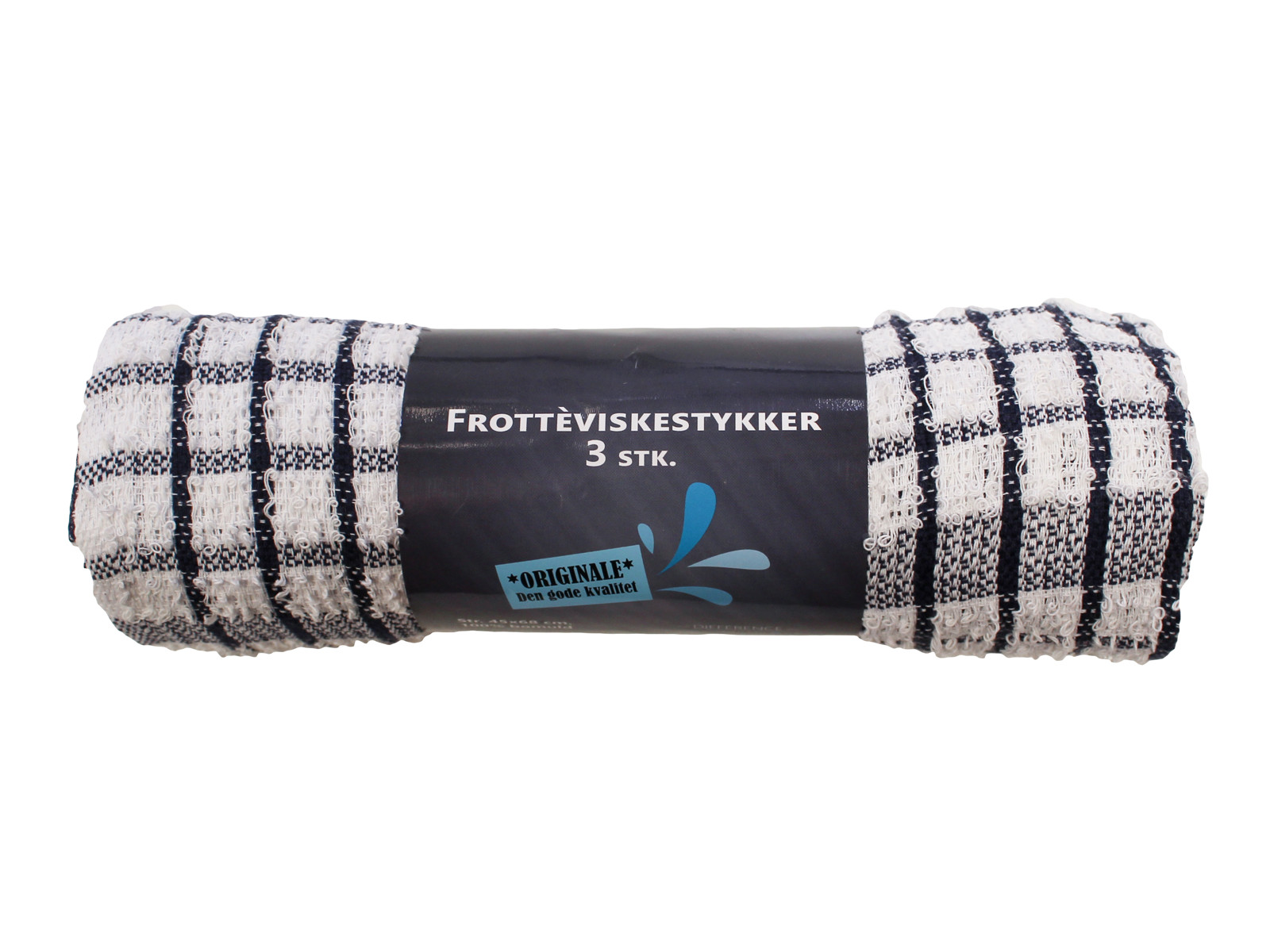 Viskestykke frotté 45 x 68 cm à 12 stk. Grøn, sort og rød. 100% bomuld
